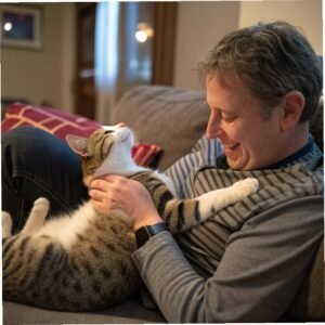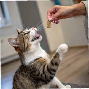 El “dar pata” similar al comportamiento canino es sorprendentemente fácil en entrenamiento de gatos. Cuando tu gato está sentado, toca suavemente su pata o pecho. Muchos gatos levantarán pata reflexivamente cuando se toca. Click y recompensa ese levantamiento de pata. Repite hasta que levante pata confiablemente cuando tocas. Luego presenta tu mano abierta sin tocar, esperando que levante pata hacia tu mano. Click cuando pata contacta tu mano, recompensa generosamente. Añade comando “dame la pata” una vez que comportamiento es confiable.