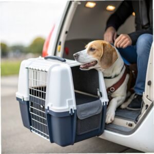 Etiqueta transportador conspicuamente con información de contacto (nombre, teléfono, dirección), información de vuelo, destino final, y fotografía reciente de tu perro adjunta. Incluye “ANIMAL VIVO” en múltiples lados en letras grandes con flechas indicando orientación correcta (“ESTE LADO ARRIBA”). Si tu perro requiere medicación durante viaje, adjunta instrucciones claras y medicación con nombre y dosis visibles.