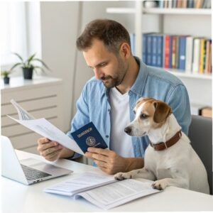 Los requisitos documentales para viajar con tu perro en avión varían dramáticamente según destinos domésticos versus internacionales, pero ciertos documentos son universalmente necesarios. El certificado de salud veterinaria es absolutamente obligatorio, emitido por veterinario licenciado dentro de 10 días (doméstico) o 10-30 días (internacional) antes de viaje. Este certificado confirma que tu perro está saludable, libre de enfermedades contagiosas, actualizado en vacunas y apto físicamente para volar. El veterinario examina corazón, pulmones, temperatura, condición corporal general y revisa historial médico completo.
